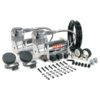 The VIAIR 380C Dual Performance Value Pack is ideal for air suspension systems capable of providing a maximum of 200 PSI and a 100% duty cycle. The kit features two 12-volt Pewter, Chrome or Stealth Black 380C air compressors, two heavy duty 40-amp relays and a 165 PSI cut-on, 200 PSI cut-off heavy-duty pressure switch. Each 380C Dual Performance Value Pack also comes with remote mountable air filter assemblies and mounting hardware.